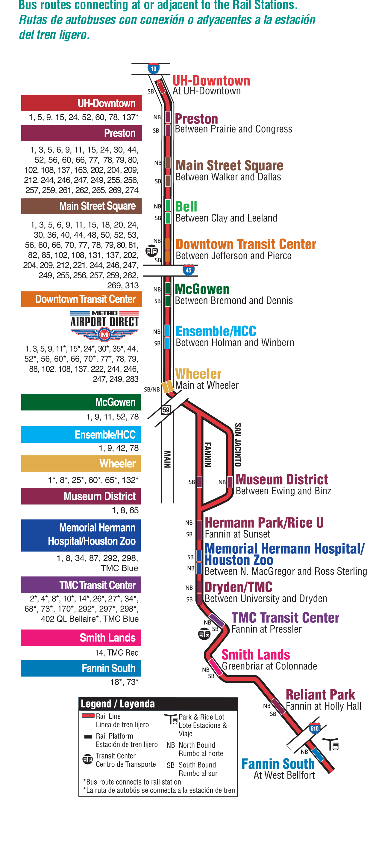 Use our interactive or PDF system map to see all Houston METRO bus routes and rail lines, transit facilities, transfer options and more The 13-mile Red Line runs from Fannin South Station through downtown along Main Street through the Museum District, the Texas.